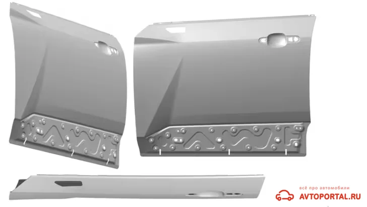 На этот раз «АвтоВАЗ» защитил права на наружную панель передней боковой двери перспективной новинки. Судя по изображениям, это, по сути, вся дверь, только без ручки, петель и защитного обвеса из черного неокрашенного пластика, который есть на обоих полнофункциональных прототипах «Азимута», созданных к текущему моменту.
